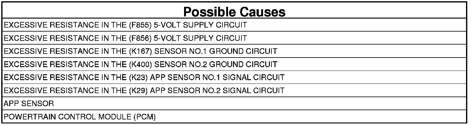 - Repair the excessive resistance in the (K29) APP Sensor No.2 Signal circuit.