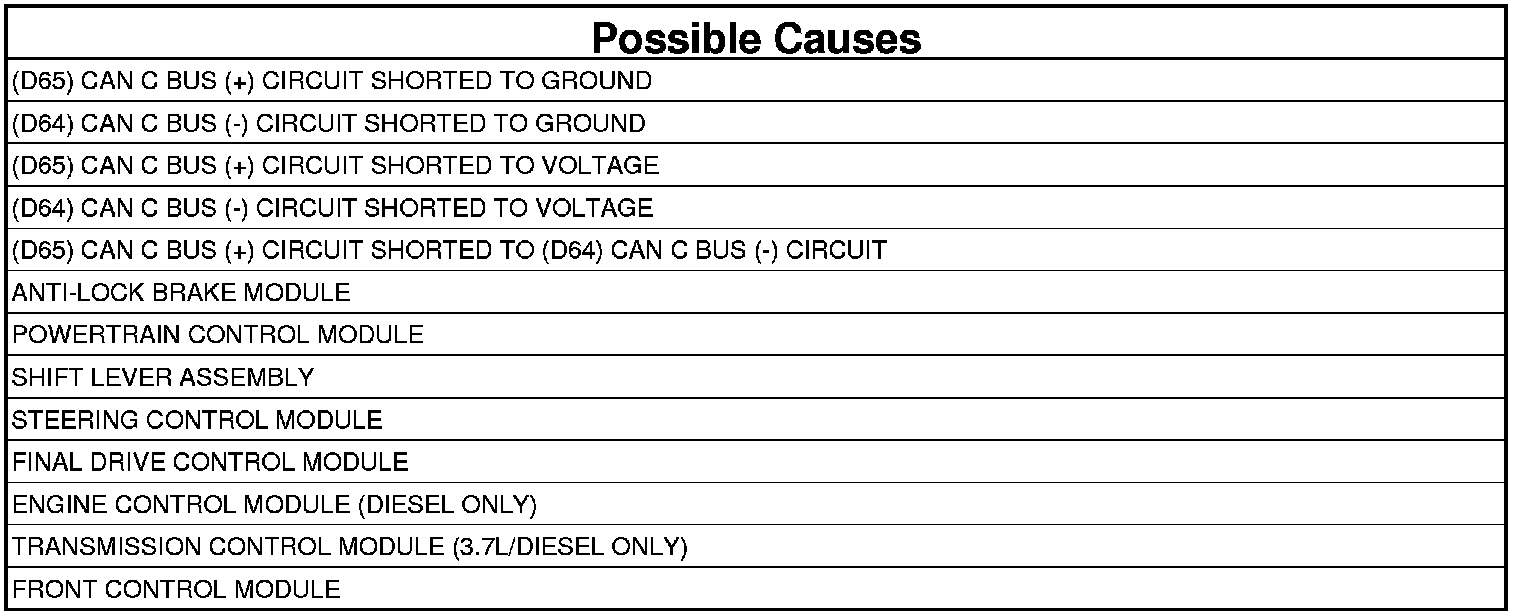 - Repair the (D65) CAN C Bus (+) circuit for a short to voltage.