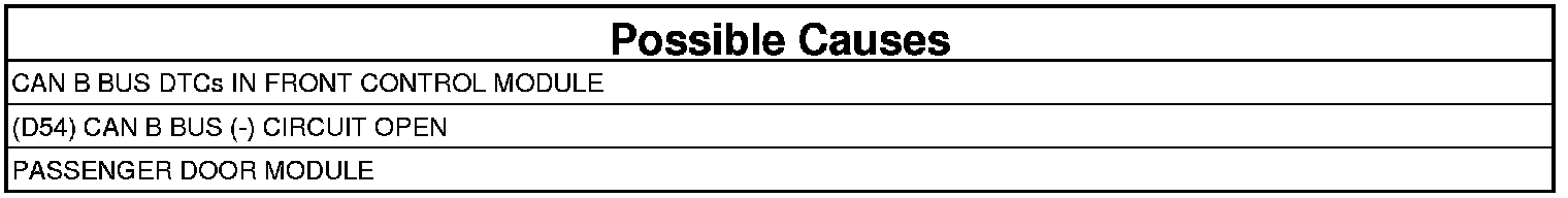 - Repair the (D54) CAN B Bus (-) circuit for an open.