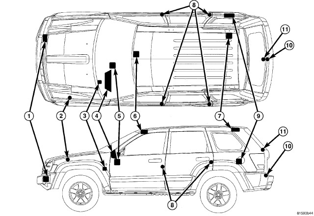 - Intrusion Sensor Receiver (6) - An intrusion sensor receiver is located in a bracket on the right front corner of the overhead console above the headliner in the passenger compartment of vehicles built for sale in certain export markets where it is required equipment.