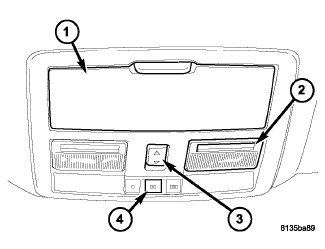 - Press and hold the desired HomeLink(R) button (4). Do NOT release the button.