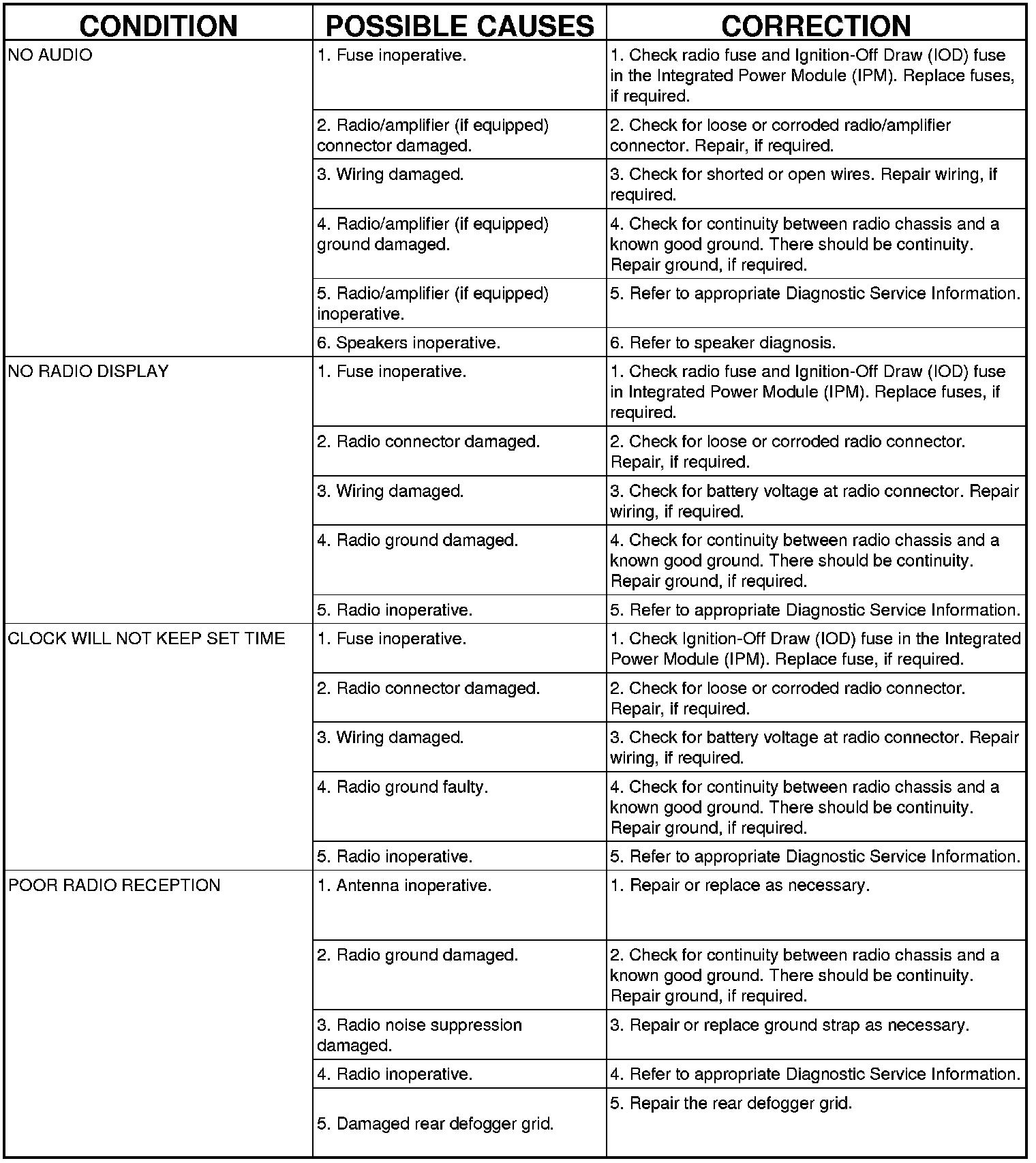 Any diagnosis of the Audio system should begin with the use of a scan tool and the appropriate Diagnostic Service information.