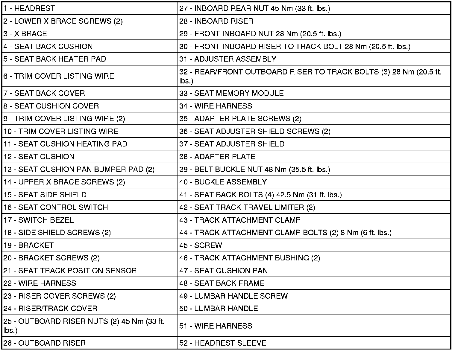 DRIVER SIDE EIGHT WAY POWER SEAT