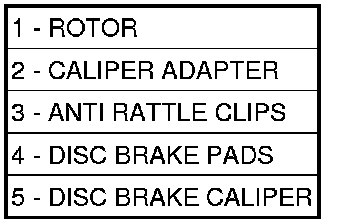 7. Remove the inboard and outboard brake pads (4) from the caliper adapter (2).