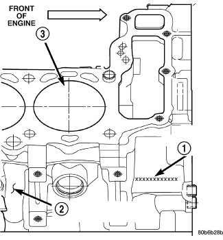The engine serial number (1) is located at the right front side of the engine block.