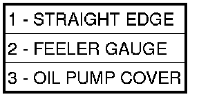 2. Lay a straight edge across the pump cover surface (3). If a 0.025 mm (0.001 in.) feeler gauge (2) can be inserted between the cover and the straight edge the oil pump assembly should be replaced.