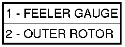 6. Slide outer rotor (2) into the body of the oil pump. Press the outer rotor to one side of the oil pump body and measure clearance between the outer rotor and the body. If the measurement is 0.235mm (0.009 in.) or more the oil pump assembly must be replaced.