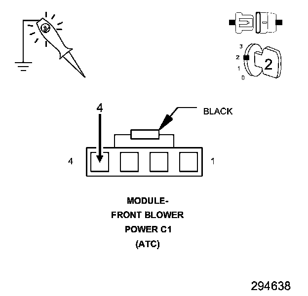 3. Using a 12-volt test light connected to ground, back probe the (C56) Front Blower Control circuit in the A/C Heater Control C2 harness connector.