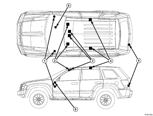 - Liftgate Lamp (5) - A standard liftgate lamp is located in the lower left corner of the liftgate trim panel and is activated automatically whenever the liftgate is opened to illuminate the rear cargo area of the vehicle.