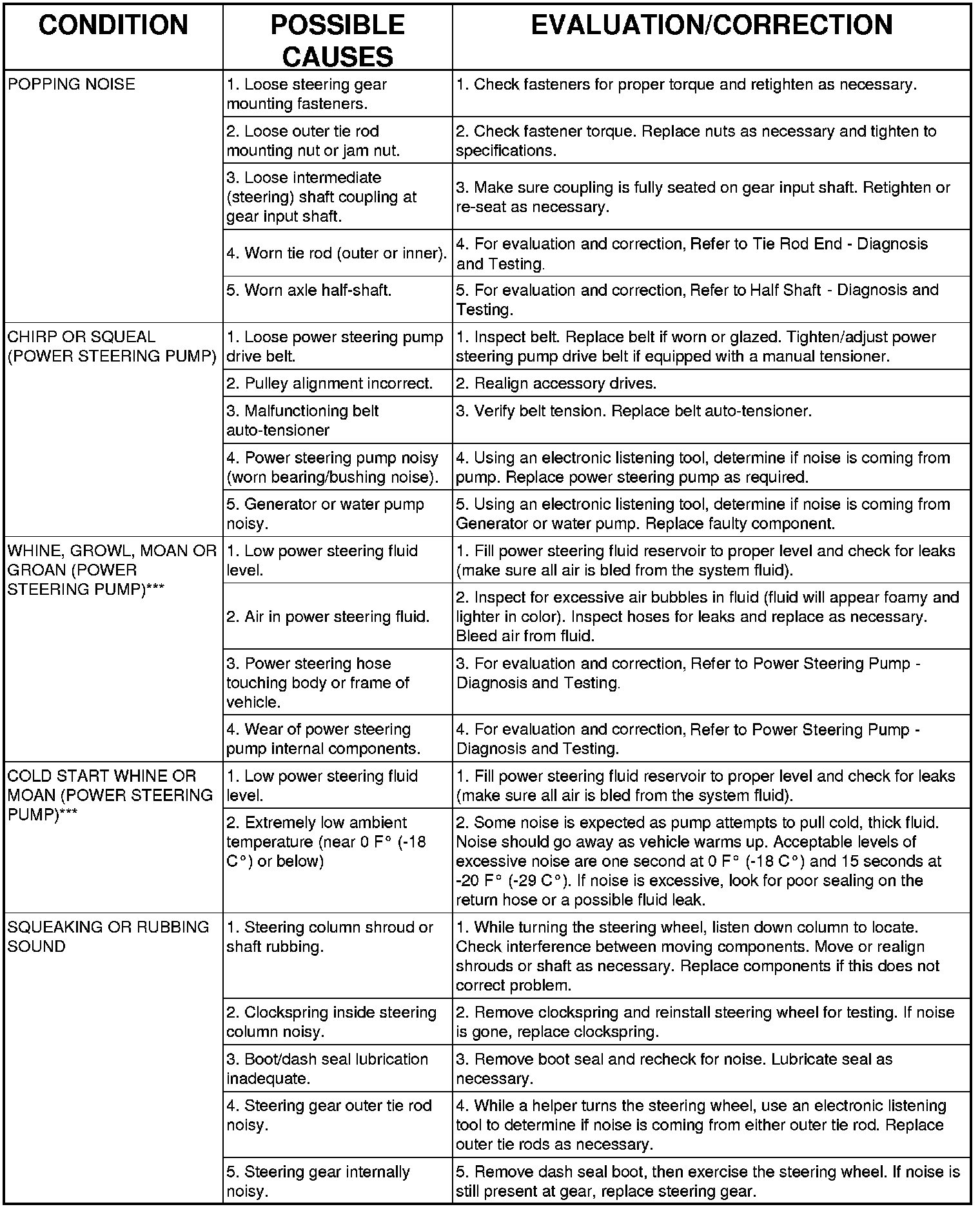 NOTE: *** Power steering pump growl/moan/groan results from the development of high pressure fluid flow. Normally this noise level should not be high enough to be objectionable.