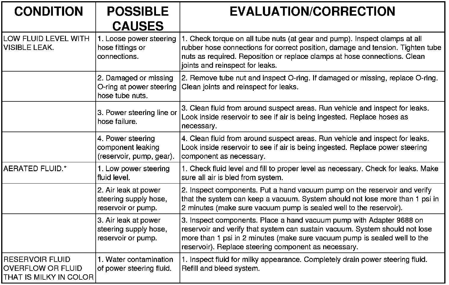 NOTE: Extremely cold temperatures may cause power steering fluid aeration. The air should work its way out of the system as the fluid warms.