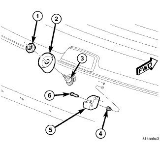 4. Install and tighten the nut (1) that secures the bezel and the output shaft to the liftgate outer panel. Tighten the nut to 5 Nm (43 in. lbs.).