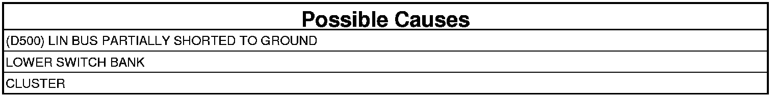- Repair the (D500) LIN Bus circuit for a short to ground.