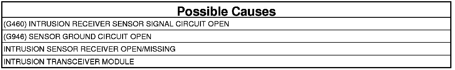 - Repair the (G460) Intrusion Receiver Sensor Signal circuit for an open.