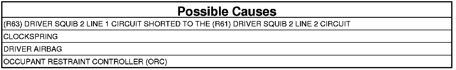 - Repair the (R63) Driver Squib 2 Line 1 circuit for a short to the (R61) Driver Squib 2 Line 2 circuit.