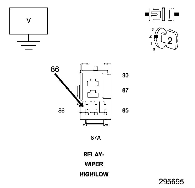 3. Measure the voltage at cavity 86 of the Wiper HI/LOW relay.