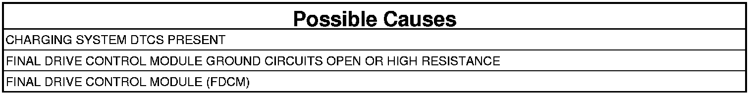 The Final Drive Control Module detects that system voltage is above 16.0 volts for 10 seconds with engine RPM greater than 350.