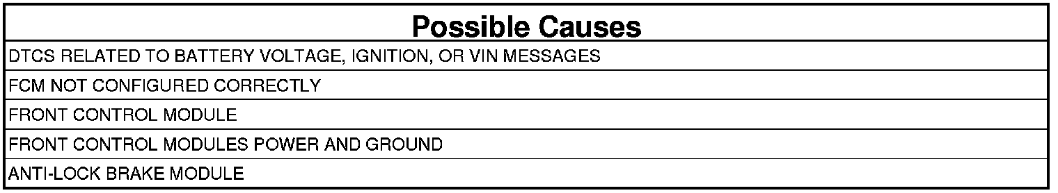 NOTE: Check for FCM configuration, CAN B or C hardware electrical, VIN Missing/Mismatch, battery or ignition related DTCs.