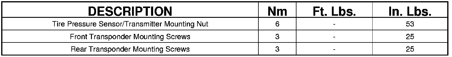 Tire Monitoring System: Specifications