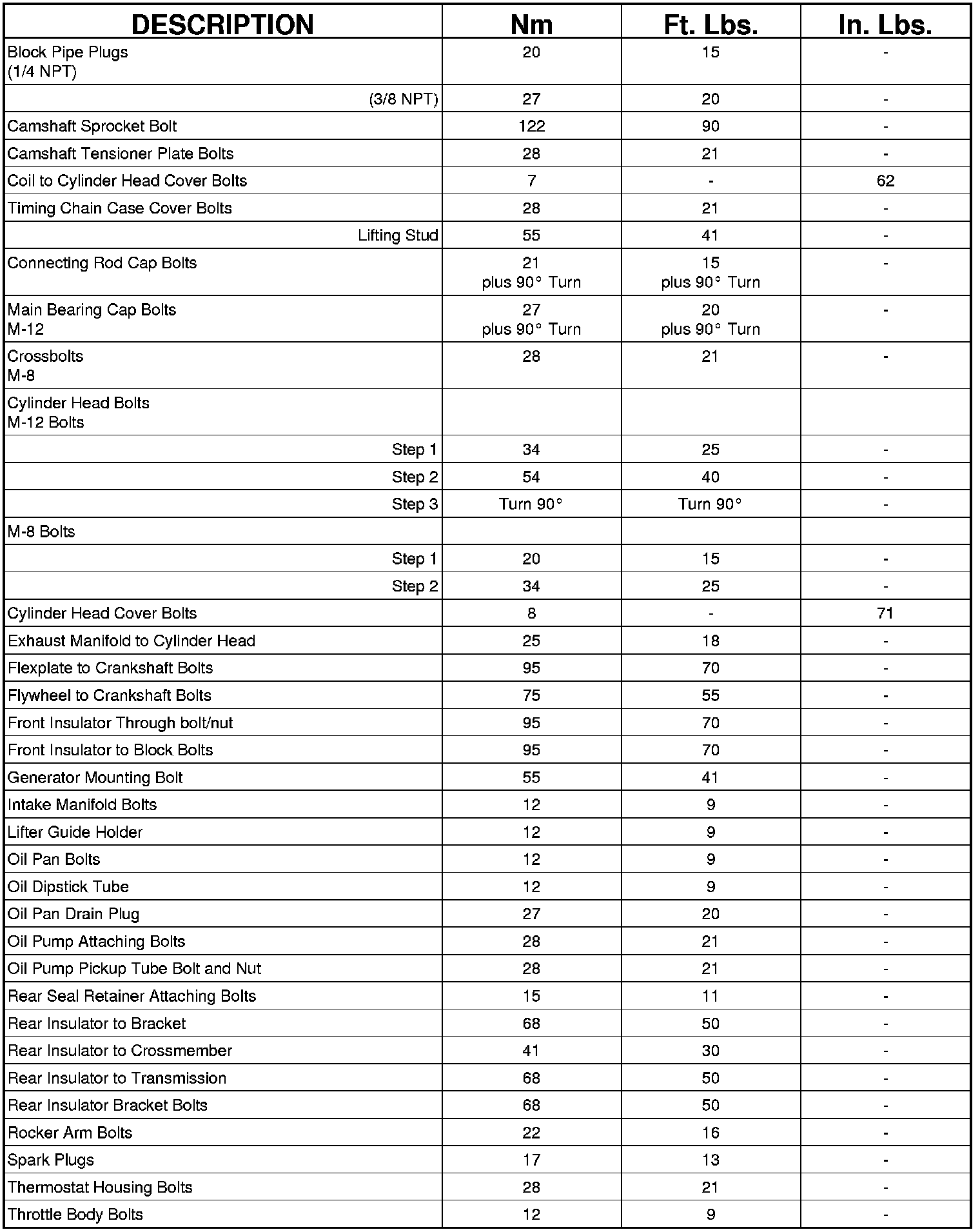 Tighten main bearing cap bolts to 27 Nm ( 20 ft. lbs.) in the sequence shown.