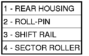 9. Using a suitable punch, remove the roll-pin (2) holding the sector roller (4) to the shift rail (3).
