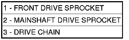 27. Remove the front drive sprocket (1), mainshaft drive sprocket (2), and drive chain (3) as one.