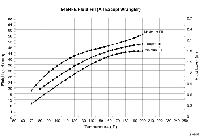 9. Adjust transmission fluid level shown on the dipstick according to the Transmission Fluid Temperature Chart.