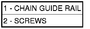 35. Install the screws (2) to hold the chain guide rails (1) to the front housing. Tighten the screws to 5-8 Nm (44-71 in.lbs.).