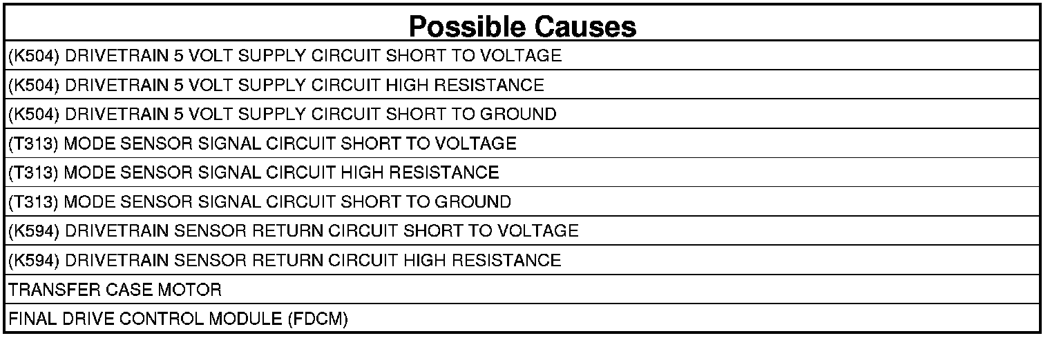 - Repair the (T504) Drivetrain 5-volt Supply circuit for an intermittent short to voltage.