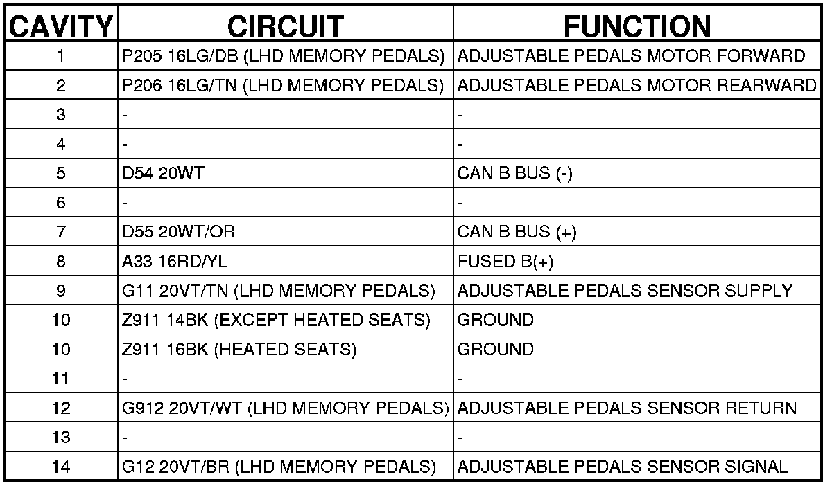 Connector C1 - (DRIVER SEAT) 14 WAY