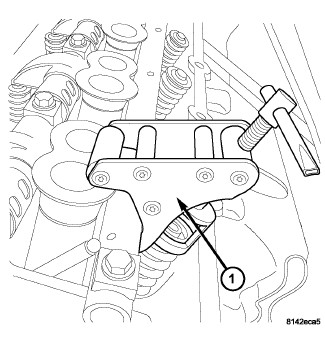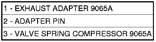 11. Install spring compressor (1,3,), special tool 9065A, and exhaust adapter arm (1) tool 9065A if needed.
