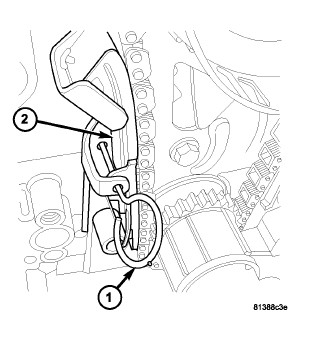 CAUTION: The timing chain must be installed with the single plated link aligned with the dot and or paint marking on the camshaft sprocket. The crankshaft sprocket is aligned with the dot and or paint marking on the sprocket between two plated timing chain links.