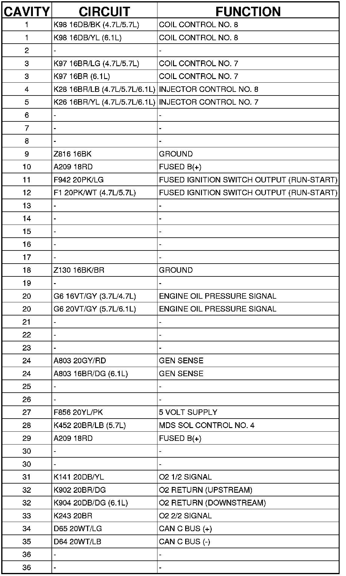 Connector C1 (GAS) - (INJECTOR) 38 WAY