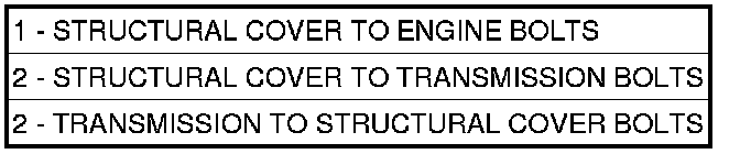 6. Remove the bolts (1, 2, 3) holding the structural cover to the transmission and engine.