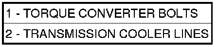 14. Disconnect transmission fluid cooler lines (2) at transmission (1).