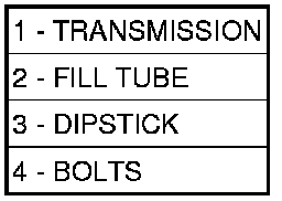 16. Remove the bolts (4) holding the transmission fill tube (2) to the transmission (1).