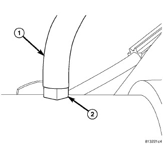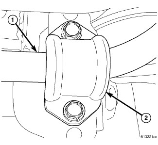 8. Install axle vent hose (1) to axle vent (2) and cover bracket.