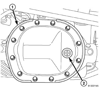 16. Install differential cover (1), fill differential and install fill plug (2).