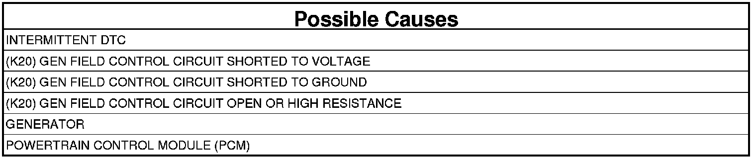 - Repair the (K20) Gen Field Control circuit for a short to voltage.