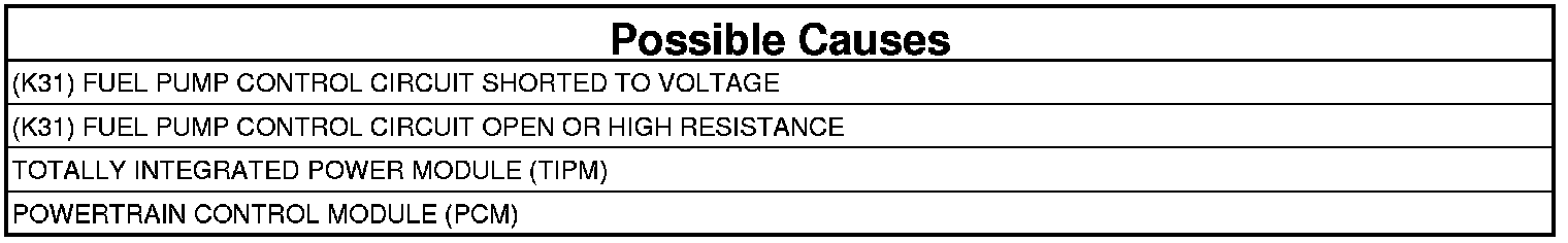 - Repair the (K31) Fuel Pump Control circuit for a short to voltage.
