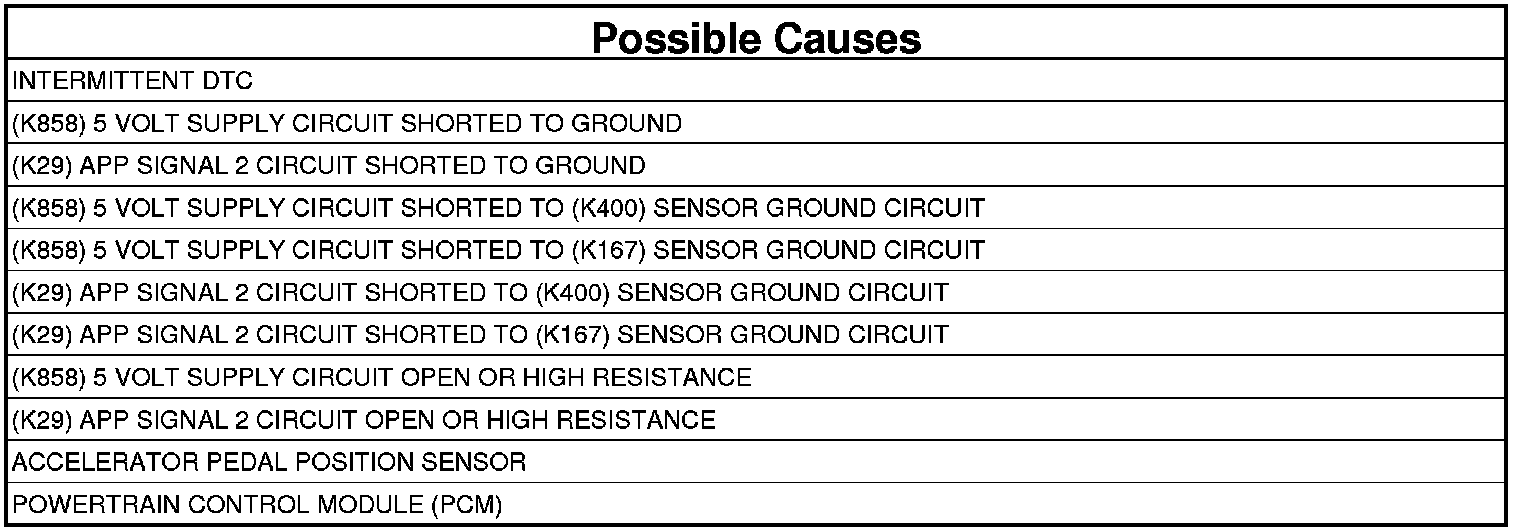- Repair the (K29) APP Signal 2 circuit for a short to the (K167) Sensor Ground circuit.