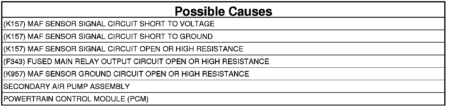 - Repair the (K157) MAF Sensor Signal circuit for a short to ground.