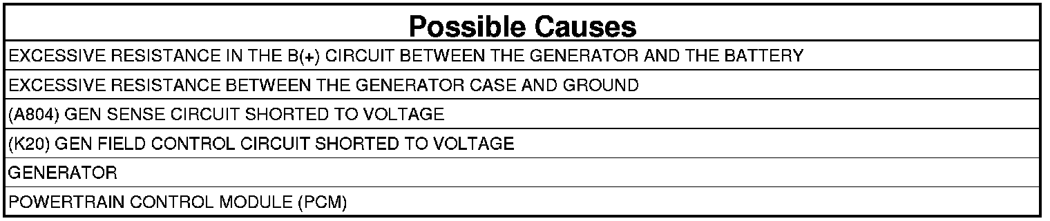 - Repair the (A804) Gen Sense circuit for a short to voltage.