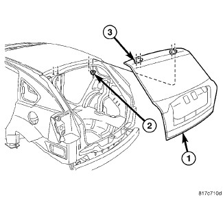 6. Remove fasteners (2) attaching liftgate (1) to liftgate hinge (3).