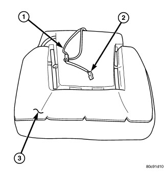3. Disconnect the inoperative heated seat cushion or seat back element electrical connectors (2).