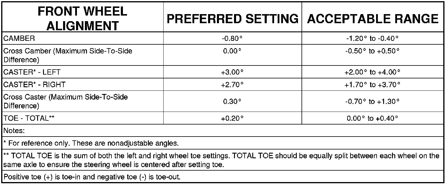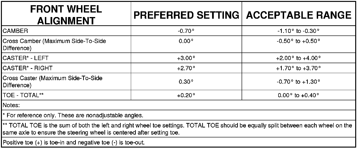 NOTE: All wheel alignments are to be set with the vehicle at curb height. Service and Repair