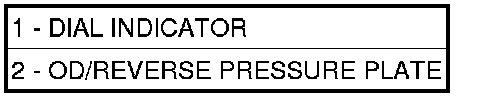 30. Measure OD clutch pack clearance. Set up Dial Indicator C-3339A (1) on top of the OD/Reverse reaction plate (2).