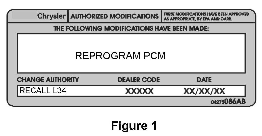 1. Type or print (with a ballpoint pen) the recall number, repair modification, dealer code and date on the Authorized Modifications Label (Figure 1).