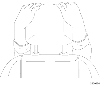 If the Active Head Restraint (AHR) units have been deployed, both the driver and passenger side units must be reset. You can recognize that an AHR has been deployed by the forward position of the head restraint cushion and the large spacing between the cushion and the AHR rear trim cover.