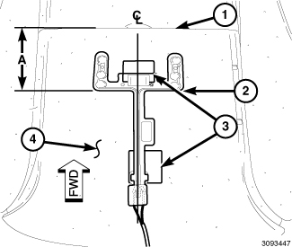 1. Mark the Center Line (CL) of the seat cushion on the top of the seat cushion foam (4) or, if the vehicle is so equipped, on the seat cushion heater element mat of a heated seat or heated and ventilated seat.